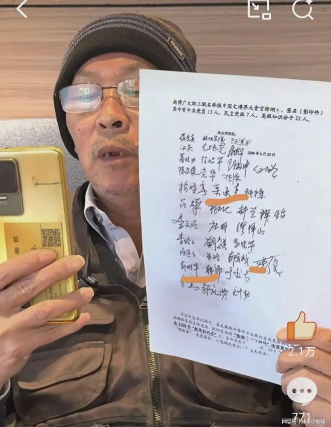 原南博院长晚年不安。正当他站出来辟谣时,南玻前员工举报他的视频被曝光。而且这是一次实名举报,或者说是42人的联合举报。名叫郭立典的前员工拿着自己的身份证,希望将徐某绳之以法。一是举报徐某盗窃、走私文物的行为。第二,私自将文物从开封南迁,拿走你想要的。三是与他人合作,识别馆藏文物为赝品,并进行搬迁。第四,徐的儿子在上海开了一家拍卖行,拍卖后被法国文物商收购。五是利用书画古玩进行权利交易。六是扰乱私生活、私授受受、以权谋私等违法行为。如果郭立典的举报内容有任何一个属实,徐的名誉就会毁于一旦。是一生。他表示,他已经不止一次举报过此事。那时候他们实力太强,没有任何结果。报道十年后,什么也没发生。郭立典发布的文件中,有42位共同签署人,签署日期为2008年6月。此时正是徐刚退休的时候。现在这件事已经闹得这么大了,不知道对于这起相关事件是否会有明确的回应。如果真要仔细查看的话,绝对无法抗拒考验。而且,在徐某的辟谣视频中,精明的网友发现他家里有很多古董字画。 mg会持续吗?这个需要检查吗?
