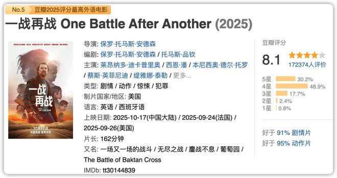从史诗般的政治斗争到对文学经典的个人诠释——对于电影观众来说,这是激动人心的一年。 《01 再战》不仅仅是一部关于父子关系的寓言、一部定格的阴谋惊悚片、一部明星云集的个性暴露喜剧,或者是托马斯·品钦 1990 年小说《葡萄园》的改编,也不是简单的 VistaVision 格式的改编,但它在向原作致敬的同时,也表达了自己的敬意。 02 《哈姆内特》改编自同名畅销小说,讲述了莎士比亚最伟大作品背后鲜为人知的传奇爱情故事。 03 黑袋行动讲述了一对夫妇和同事——迈克尔·法斯宾德和凯特·布兰切特——在组织内的双重间谍面临的危机中奋力求生的故事。法斯宾德的任务是找到泄露机密信息的幕后黑手,而布兰切特是头号嫌疑人。这就是事情变得复杂的地方。电影04 火车之梦改编自丹尼斯·约翰逊的小说。它讲述了罗伯特·格雷尼尔(Robert Grenier),一名伐木工人和铁路工人,在20世纪初日新月异的美国,致力于修建横贯美国的铁路,经历了意想不到的深度、美丽和陌生的生活。 05年新浪潮电影围绕让-吕克·戈达尔拍摄的《气喘吁吁》,再现了法国电影新浪潮运动背后的故事。 06 《平凡的意外》以惊险刺激的方式展开,黑暗而现实的人物故事来自于在监狱中看到和听到的巴纳西。它将暴政、滥用权力、为暴而暴置于道德伦理的天平上,衡量人性的分量;充满悲愤又不失幽默,也消除了贪污贿赂之风。 07 无奈讲述失业商人杀死潜在竞争对手的故事找到工作。这部电影既恐怖又搞笑。 08 对不起,亲爱的,久别重逢,但友情依旧。她的同学和朋友都在继续前进,结婚、怀孕、生子。爱丽丝只能独自前行,寻找自己的人生道路。校园性侵事件发生后,生活是这样的:升职到母校教书,和学长一起吃饭,被叫去当陪审员,和邻居开始恋情……一切看似如旧,但无形的伤口却依然隐隐作痛,生怕自己在不在的情况下惊慌失措,杀了他。五个章节不按时间顺序排列,让情绪随着记忆的倒带和快进而变化。没有暴力的视觉效果。为了实现一个没人相信的美丽梦想,09至尊马蒂走入了地狱。 10 《情感价值》充分利用人物之间微妙的互动,探索故事如何隐藏情感并促进治愈,这种方法超越了简单的英雄和恶棍。这确实令人叹为观止。 11 胡加尔的一天看似平凡,但奇怪的是,它其实很美好。过去一天中那个孤独的人是崭露头角的摄影师彼得·比尔德,邀请她到闺房聊天的人是著名作家琳达·罗森克兰兹。 12 爱丁顿小镇的市长正在竞选,希望击败现任进步市长,后者计划在镇上建设大型人工智能数据中心。病毒来势凶猛。关于居家隔离和戴口罩预防疫情的争论正在进一步加剧社区分歧。阴谋论甚嚣尘上,冲突一触即发。 13种共同语言 发现冰雪里冻着钱的学生、收留迷茫游客的导游、辞职后探望母亲的男人,三个故事交织在一起,身份模糊。 14 祝大家没有幸福。在乡村的卡斯特兰奇房子里,经常会发生奇怪的事情。来自东京的护理学生(古川琴音饰)探望她的祖父母。爷爷奶奶时而热情,时而心不在焉。 15 奥威尔:2+2=5 深度解码这位以《动物农场》、《1984》等代表作闻名的英国文坛巨匠,如何用犀利的笔触直指极权主义的伤口,用预言般的话语预言了现代社会的问题。影片将通过珍贵的档案和专家的解读,揭示这位在文字炼狱中提炼真理的反乌托邦先知的创作秘密。 16 经过一晚的珍珠鸡聚会后,女孩戴着面具从聚会回家,发现她的叔叔躺在地上,生命垂危。漫长的等待父亲危机得到解决的同时,他也遭遇了表弟的醉酒袭击。然而,比这个有趣的夜晚持续时间更长的是我的家庭葬礼。他叔叔的埃默里。当反派一夜变天使,寡妇成为众矢之的,阿姨们歌颂爱情和亲情。长期埋藏在泥土中的秘密无人敢直视。 17 《腓尼基计划》 韦斯·安德森 (Wes Anderson) 这部集企业间谍惊悚片、搞笑喜剧和父子家庭剧于一体的影片大获成功。 《十八浪漫一代》讲述了主人公巧巧(赵涛饰)从千年开始,跨越21年至今的情感历程。这是女性成长、崛起、改变的过程,也画出了“革命一代”的命运曲线。 19《弗兰肯斯坦》讲述了他如何在一次可怕的实验中创造了一种生物,最终导致了他自己和他的悲惨创造物的毁灭。 20件杀人武器 同一个晚上的同一时间,同班的所有孩子都神秘失踪,只剩下一个孩子。整个小镇都开始骚动起来这些孩子失踪的幕后黑手是谁或是什么?这 20 部电影不仅是过去 12 个月的亮点,而且很可能是我们年复一年都会回顾的电影。从史诗般的抵抗故事到哥特式恐怖经典中的个人场景,欢迎来到我们的 2025 年最佳电影清单。您看过哪些?我们来谈谈吧。